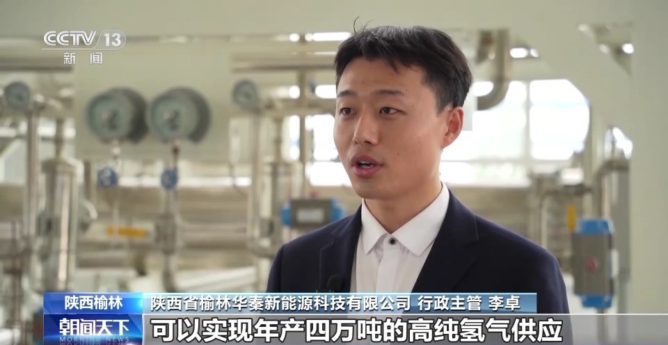 陜西省榆林華秦新能源科技有限公司行政主管 李卓:一期配套了16000立方米的儲氫系統(tǒng)和氫氣充裝站,可以實(shí)現(xiàn)年產(chǎn)四萬噸的高純氫氣供應(yīng)。