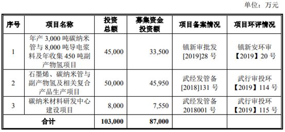 根據招股說明書,天奈科技本次公開發行股份不少于5796.45萬股。募集資金擬投資項目如下: